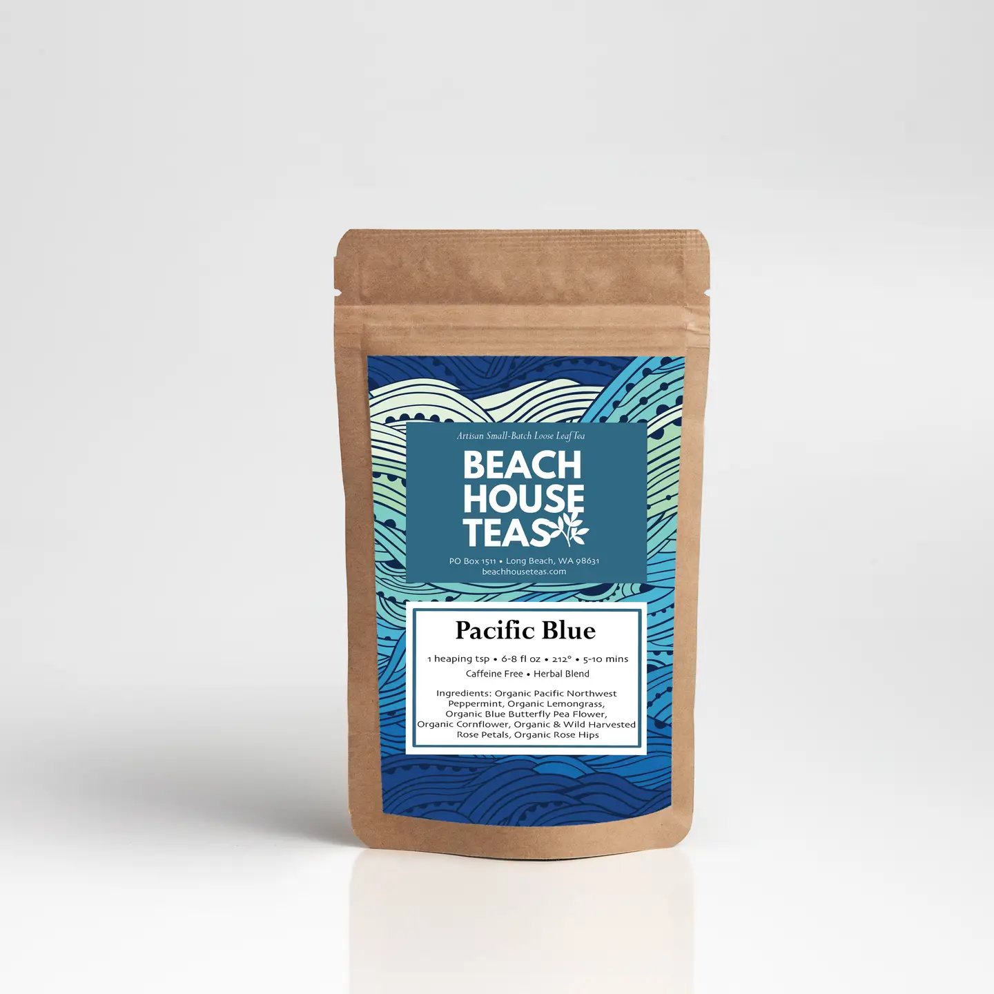 At Beach House Teas we take great care to package and seal our tea for the absolute freshest taste and why we package our teas within 30 days of blending. All our tea is carefully crafted in small batches and immediately sealed in a resealable natural Kraft stand up pouch or a 6-inch tall tea tin with a slip lid to seal in freshness. ”