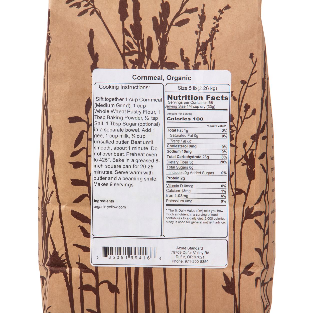 With our Azure Market Organics Cornmeal, you get the full nutrition because we use the whole grain and do not remove any of the germ. This is a coarse grind that has become a favorite for muffins and cornbread. It is also ideal as a breakfast cereal when cooked into a mush, either alone or with other grains. With our cornmeal, you can be sure you are getting high quality, non-GMO grain.