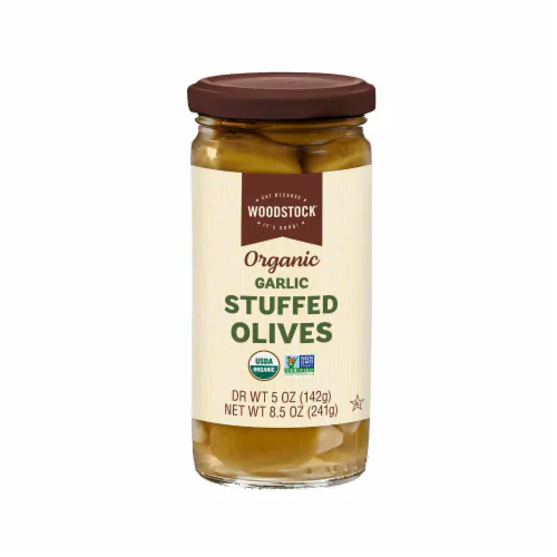 Organic Green Olives, Water, Organic Garlic, Sea Salt, Citric Acid.