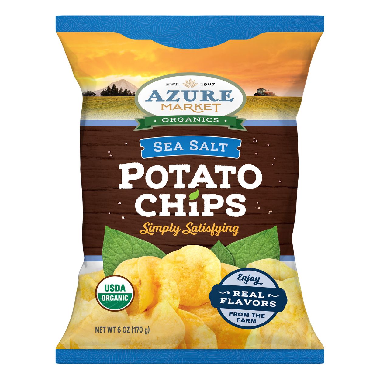 Azure Market Organics Potato Chips are available in: Salted OR Salt & Pepper. The large Family Size 18 oz bag is more economical for larger families and parties. The Regular 6 oz size is perfect for a smaller family or group of friends. The 2 oz size is perfect for one person, or just right to share with a friend.